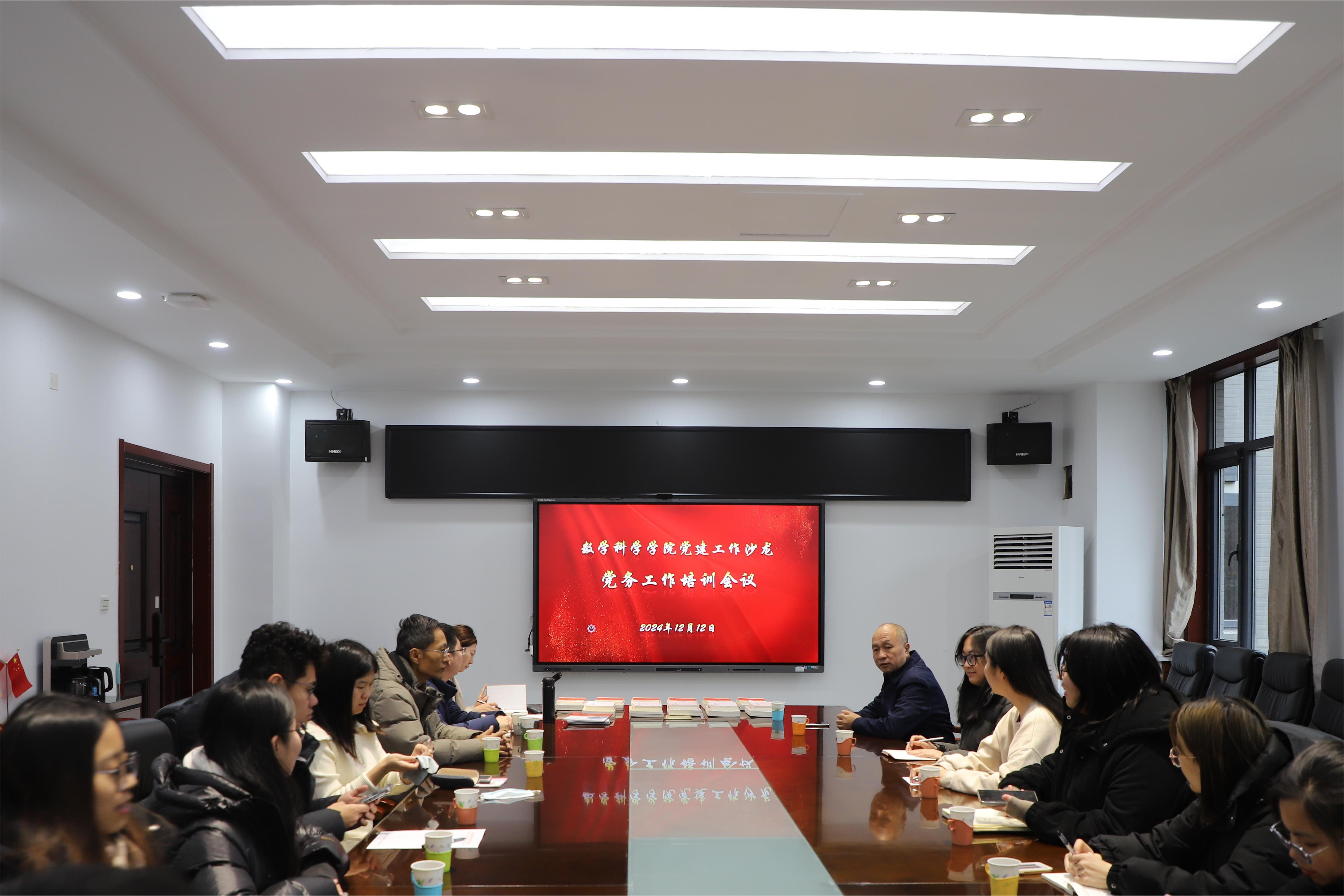 12月12日下午,澳门pg官方电子平台在204会议室举办党支部书记工作沙龙暨党务工作培训会。本次培训以《中国共产党支部工作条例(试行)》及“三会一课”制度学习为重点,旨在强化党支部政治功能,提升党建平台维护水平。学院师生党支部书记、委员共17人参训。