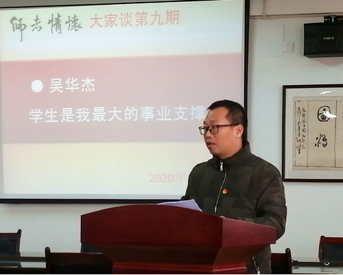 吴华杰老师从03年大学毕业来到beat365正版唯一官网必一,16年来,他先是当专任教师,然后转为实验室岗,后面又转为行政岗。岗位在变,但是他喜欢跟学生打成一片的感觉和习惯没有变。他说:“那是我的初心和使命!”这次讲述,让他再次回顾自己走过的教学、教辅之路,他说他最大的感悟就是这次讲述的题目:《学生是我最大的事业支撑》。他说:“老师,因为学生的需要而成为职业。而教书育人,是一个全面、深入、内在、细致的互动过程。作为老师,天然地、理所应当地就应该多与学生在一起。只有通过与学生的深入接触,才能真正了解学生,从而增强教书育人的针对性、有效性;只有通过与学生的深入接触,才有机会逐步增进师生感情,从而增强教书育人的亲和力、凝聚力;只有通过与学生的深入接触,才能及时发现教学及教育管理中的成败得失,从而不断改进教书育人的方式、方法,乃至激发创新灵感;只有通过与学生的深入接触,才能真正体会到这些学生值得我们用心教导,从而享受教书育人的快乐。”