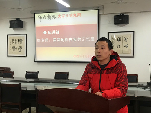 库进锋老师是学院前几年引进的博士,很快便担任了教研室主任。他讲述的题目是:《好老师,深深地刻在我的记忆里》。他说:“从小学到中学,到大学,乃至读硕士、博士,教过我的老师很多很多。说实话,已经淡忘的老师占了大部分,但也有不少老师让我记忆深刻,甚至终身难忘。说也奇怪,这些老师,随着时间的推移,越发让我想起他们曾经对我的好。”他的讲述深情地回忆了让他记忆深刻的几个老师。有高中时对同学特别关爱的化学老师蔡爱卿。他说:“蔡老师非常关爱学生,总会及时了解学生各种情况,然后恰到好处地帮助我们。”有大学本科讲课特别精彩的孟庆巨老师,他说:“《半导体器件物理》,这门课对于我们电科专业的学生来说极其重要,但是书中包含大量的公式,可以说这是一门枯燥无味并且晦涩难懂的课。但是,孟老师上课却特别能吸引人。对他印象最深的是他对课本极其熟悉,上课从来不打开课本,但是在讲课的时候,不管讲到哪个知识点,他都能准确说出是在书中第几页第几行。当时同学们非常惊讶,觉得孟老师真是太厉害了。那时我就在想,如果我是老师,如果我也能做到这样,我想,我的学生应该都会喜欢我的课吧。”他还讲到了他的硕博导师、长江学者孙洪波老师在严谨治学方面给他留下的深刻记忆,等等。