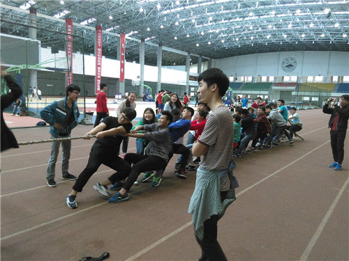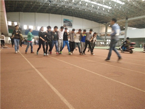 为避免学员在活动中受伤,各班班主任、辅导员及体育委员带领各班成员进行热身运动。在体育部部长翟涛学长的指导下各班同学开始分组,分别参加两人三足,颠鼓击球,拔河活动,同学们热情高涨,踊跃参赛。
