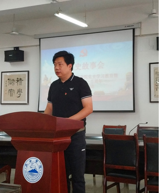 第一位讲述者是学院党委书记孙小明,孙书记讲述了学校一对退休教师晚年受到党组织关怀的故事,让我们深切感受到了党的温暖,感恩党、听党话、跟党走是我们真心的选择。