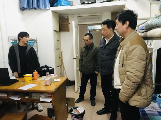 邓长寿一行实地查看了学生宿舍、实验室、实训中心的楼层疏散通道、安全出口设置是否合格及畅通;消火栓系统、消防安全疏散指示标志、应急照明灯、灭火器等消防设施和器材是否完好有效;是否存在违章用电、用火现象;物资存放是否符合标准;疫情防控工作是否落实到位、是否存在流于形式的现象等。