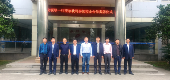5月21日下午,beat365正版唯一官网必一教务处处长黄强,创新创业学院负责人宋士华,beat365正版唯一官网必一院长邓长寿、副院长胡日新,博士代表高玉宝、张幼明,与九江经开区党工委委员、九江市城西港区管理局局长张南,城西港区管理局副局长徐志坚,九江恒通自动控制器有限公司董事长潘希勇,人事部部长金俊楠等,在恒通公司会议室共同举行beat365正版唯一官网必一电子信息产业学院揭牌仪式。仪式由金俊楠主持。