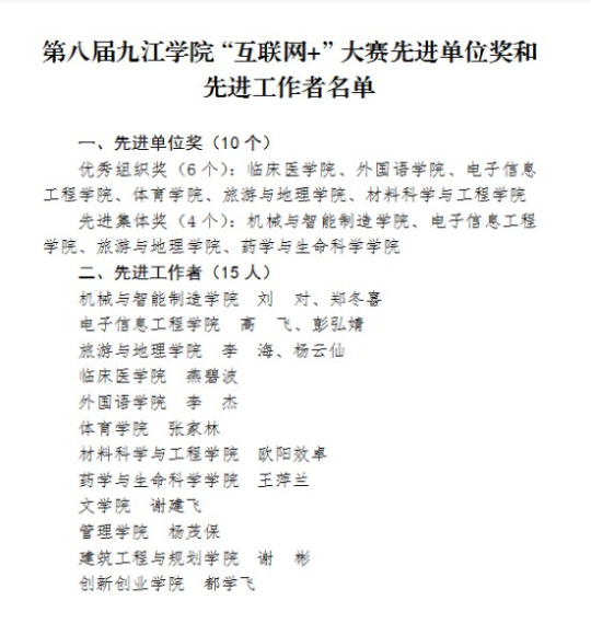 beat365一直高度重视学生创新创业教育工作,积极参加各项创新创业赛事。今年第八届beat365正版唯一官网必一“互联网+”大学生创新创业大赛开赛后,beat365积极响应学校号召,落实各项赛事工作,取得良好效果。学院相关工作获得学校好评,并在此次“互联网+”大学生创新创业大赛中被授予“优秀组织奖”、“先进集体”的荣誉称号,高飞、彭弘婧同志被评为先进工作者。