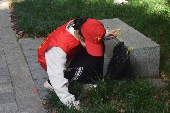 11月18日上午,志愿者们早早来到南湖公园集合,穿上志愿者服装,手持环保袋和各种清扫工具对南湖公园的落叶、纸张、烟头、塑料袋等垃圾进行清理。志愿者们不怕脏、不怕累,散落的垃圾用扫帚清扫,夹缝中的垃圾就用手捡,不放过一个塑料袋、一个烟蒂、一片纸屑。经过一上午的清理,南湖公园更加干净,环境也更加优美。