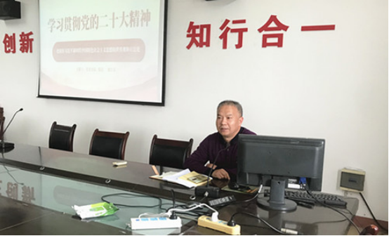 会上,院长邓长寿以《学习贯彻党的二十大精神---把握好习近平新时代中国特色社会主义思想的世界观和方法论》为题,结合学院发展实际,从坚持人民至上、坚持自信自立、坚持守正创新、坚持问题导向、坚持系统观念和坚持胸怀天下6个方面讲述了专题党课。