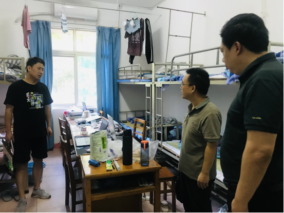 随后,汪傧书记与张堑副书记在学生科科长朱亚军及多位辅导员的陪同下,深入学生宿舍,对宿舍内的安全状况进行了全面细致的排查。汪书记在检查中反复叮咛:“学生宿舍是校园安全管理的重中之重,必须确保万无一失。学生的安全始终是我们最关心的首要问题,国庆假期即将来临,我们必须确保每一名学生的动向都在掌握之中,绝不能有任何疏漏。”