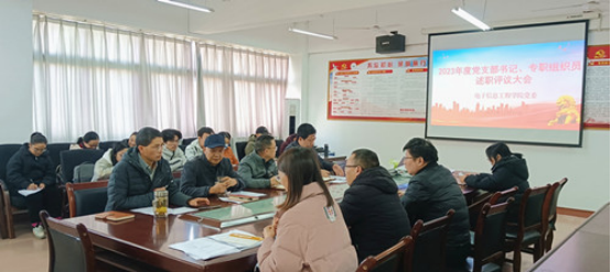 12月27日下午,学院党委召开2023年度党支部书记、专职组织员述职评议大会,本次会议由党委书记汪傧主持,党委委员、各支部委员以及教师代表参加了本次会议。