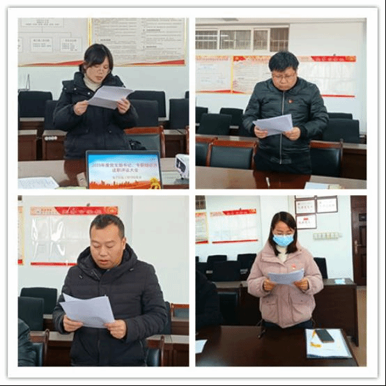 会上,学生党支部书记高飞、教工第一党支部书记毛莉莉、教工第二党支部书记吴华杰和专职组织员赵云分别从各自落实党建工作责任、完成上级党委各项工作部署、推进党支部规范化建设情况、学习习近平新时代中国特色社会主义思想等方面所取得的成效、工作中存在的问题以及下一步工作安排等方面进行了汇报。