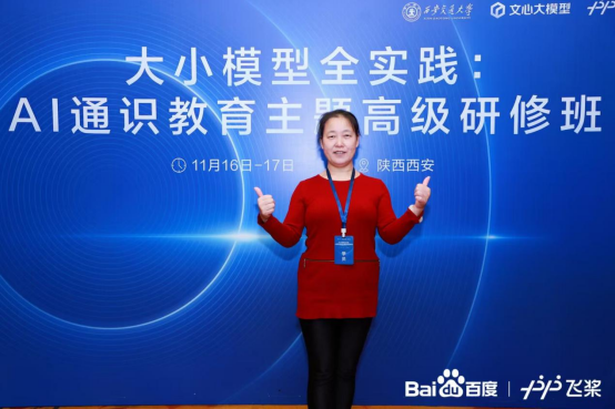 为加快人工智能、大模型等新技术与高校 AI 通识教育深度融合,提升高等院校人工智能通识课教师的实践能力,由教育部高等学校大学计算机课程教指委指导,教育部大学计算机课程改革虚拟教研室主办,西安交通大学和百度公司承办的“大小模型全实践:AI 通识教育主题高级研修班”于 2024年11月16-17 日在西安建国饭店举办,此次培训采用线下课程的形式进行,beat365人工智能教研室李晓妮老师参加了相关研修学习。