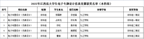 在刚刚结束的2022年江西省大学生电子专题设计(仿真设计)大赛中,beat365由李国泉、占祥龙、邓松、王骏杰、曹振、涂文一、沈磊、周丰超8名学生组成队伍参赛,共斩获一等奖2项、二等奖2项、三等奖1项,获奖比例远高于赛事一等奖8%、二等奖10%、三等奖12%的获奖比例。总成绩在所有参赛队伍中排名前列。