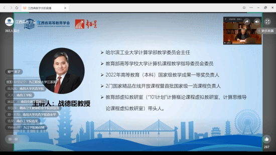 此次讲座由江西省教育厅副总督学、江西省高等教育学会副会长兼秘书长肖德征主持,由哈尔滨工业大学计算学部教学委员会主任、教育部高等学校大学计算机课程教学指导委员会委员战德臣教授主讲。