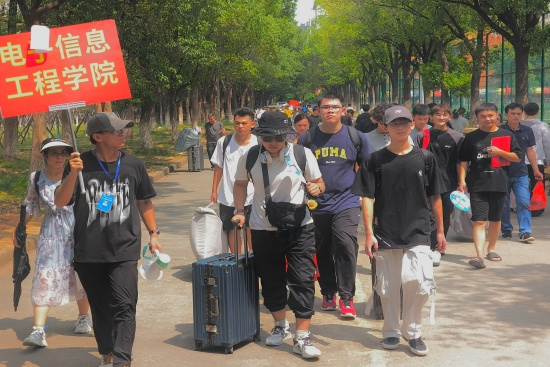 校园内处处洋溢着热烈的迎新氛围。校门口“欢迎2025级新同学”的巨型横幅格外醒目,学院的迎新帐篷沿主干道整齐排列,志愿者们身着统一服装,主动上前接过新生的行李,耐心细致地解答报到流程,介绍校园设施使用说明生活服务保障等各类问题,从协助填写资料到护送前往宿舍,全程提供“一站式”贴心服务,让新生和家长快速感受到校园的温暖。