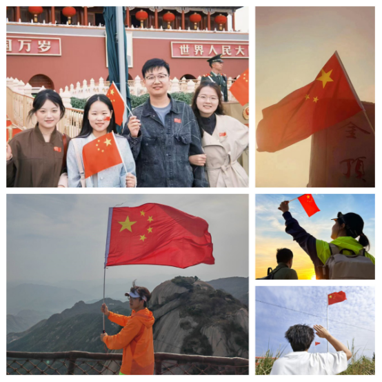 在“我与国旗合个影”摄影活动中,同学们在全国各地记录下与国旗同框的珍贵瞬间。天安门前青春靓丽的合影、日出时分仰望国旗的庄严、登顶山顶摇举国旗的胜利喜悦、红日照耀下的小国旗与心中大自豪……每一张照片都是对祖国最深情的告白。