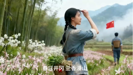 在红色动漫创作环节,同学们以智能手段和创新思维,赋予革命精神新的时代内涵。A2462班郝一鸣的作品《井冈兰香》以“井冈山精神的当代传承”为核心,通过青年女战士伍若兰的形象与“兰香满山”“精神永存”等意象,巧妙连接历史与当下。这些作品体现了同学们以专业技能为画笔,赋予革命精神新的时代内涵。