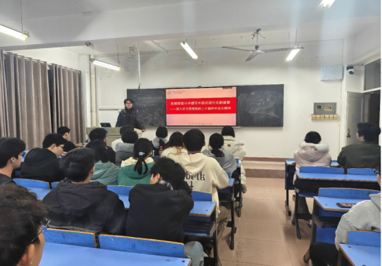 宣讲中,他聚焦全会的重大意义,围绕“十五五”时期的发展目标、战略任务等核心内容,深入阐释全会在推进中国式现代化进程中的关键作用。同时,紧扣青年责任与使命,结合学生干部岗位职责,生动解读全会精神与日常学习、工作的结合点,引导大家将理论学习成果转化为服务同学、助力学院发展的实际行动,号召广大青年坚定理想信念,以实干担当践行青春使命。