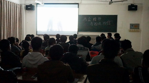 为了广泛开展大学生关心国家大事的思想政治教育,贯彻全国“两会”精神,3月26日晚,学院大一各班级团支部竞知楼开展了关于“两会”精神主题团日活动。