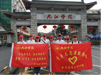 7月3日上午,beat365正版唯一官网必一“永远跟党走·奋进新时代”暑期“三下乡”社会实践服务队在学校南门口集中,在学院团委书记高飞老师带领下乘车赴都昌县周溪镇开展志愿服务活动。