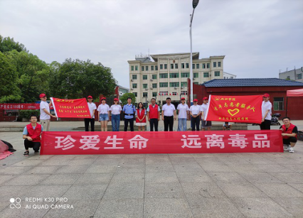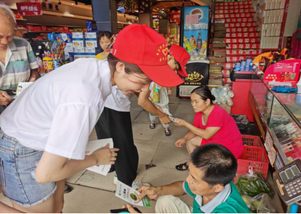 7月5日,高飞老师带领beat365正版唯一官网必一三下乡社会实践服务队与周溪镇党委委员段龙智副镇长、周溪镇派出所民警冯唐坤带领的志愿者一同在周溪镇政府门前广场及附近社区开展防范网络诈骗和禁毒知识宣传。