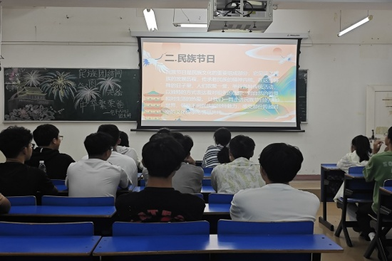 活动在各班充满欢声笑语和团结友爱的气息开展,各班团支书首先带领同学们学习了习近平总书记在全国民族团结进步表彰大会上发表重要讲话精神,习近平总书记的讲话全面总结了我国民族团结进步事业取得的伟大成就,深刻揭示了中华民族共同体意识形成和发展的根脉和魂脉,明确提出了新时代新征程铸牢中华民族共同体意识、推进中华民族共同体建设的总体要求。随后,各班团支书通过PPT,带领同学们观看各民族的民风民俗,感受各民族的文化特色,让同学们深入了解各民族之间的联系和民族团结的重要性,从而促进各民族同学之间的友好相处。