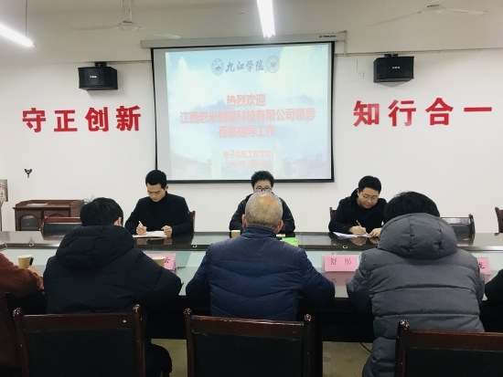 2月19日下午,江西忽米智能科技有限公司总经理方子福一行莅临beat365,就校企合作相关事宜进行洽谈。学院院长邓长寿、副院长罗东云以及自动化教研室、人工智能教研室、学生科、院办负责人热情接待了方子福总经理一行,并在学院会议室举行了座谈会。